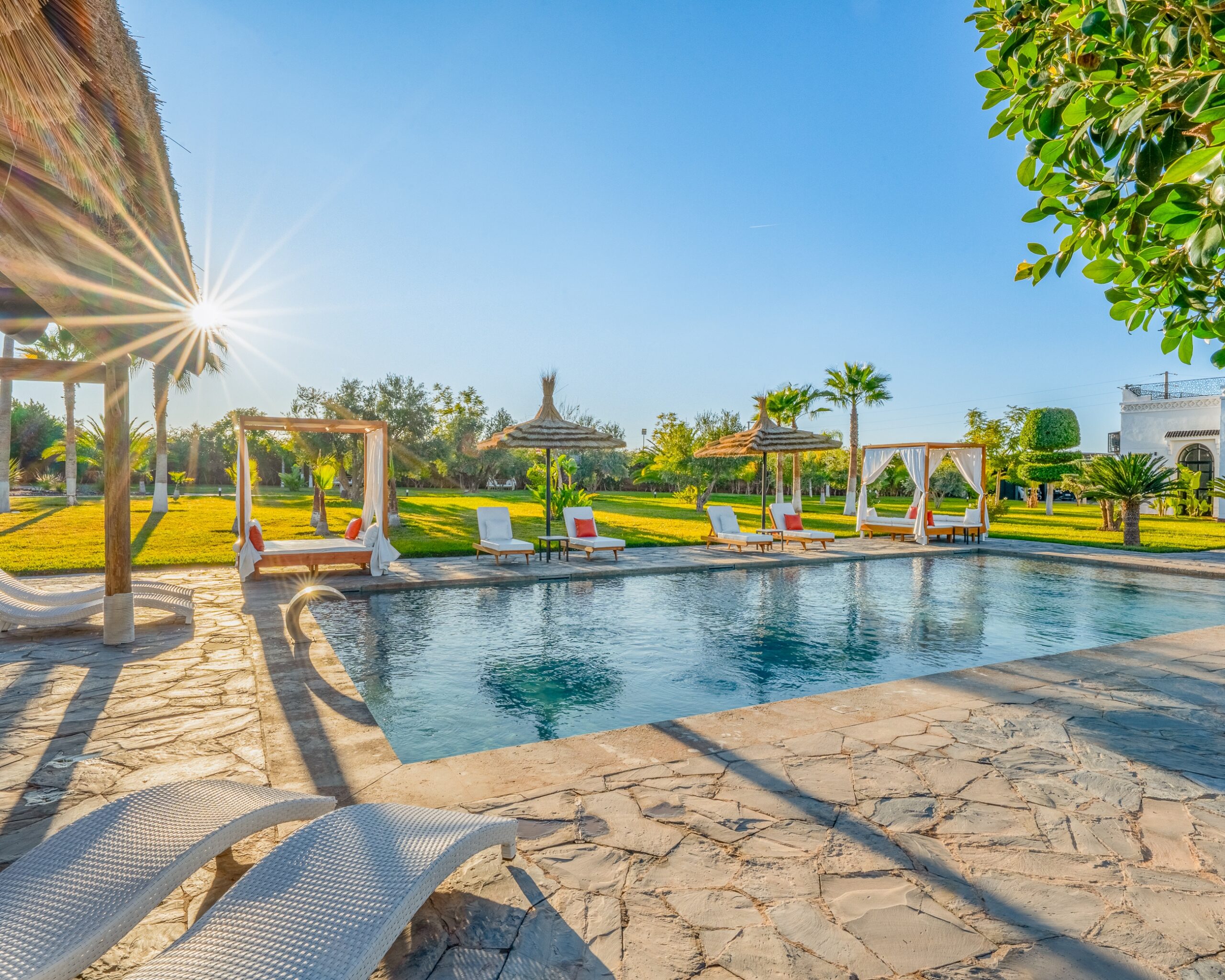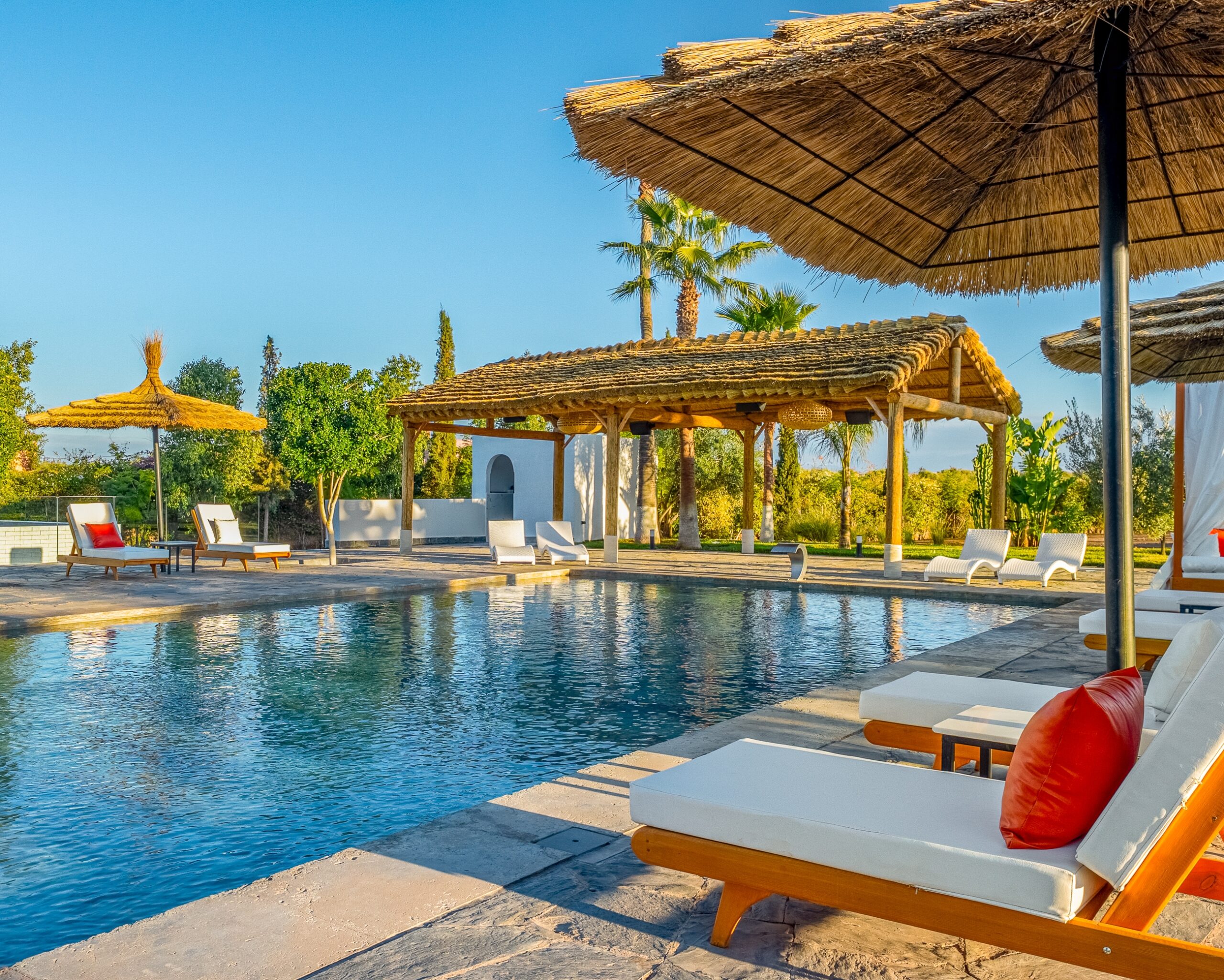 Les espaces du domaine s’organisent autour du jardin, avec une circulation fluide entre les différentes zones. Pensés pour le repos, ils offrent des zones ombragées et ouvertes, permettant de profiter du lieu à tout moment, dans un cadre calme et naturellement intégré.